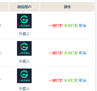 传统结算模式需要平台人工给商家进行转账,效率低还容易出错。新版外卖人只需要商家绑定微信账号,在商家端申请提现后,财务人在网站后台可以一键转账到商家账号。